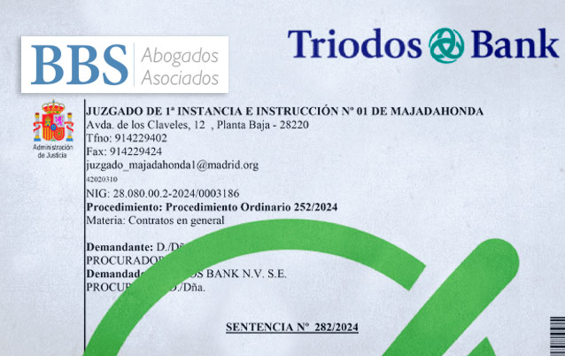 BBS Abogados logra otra Sentencia favorable en la defensa de los afectados por CDAs de Triodos Bank El Juzgado de